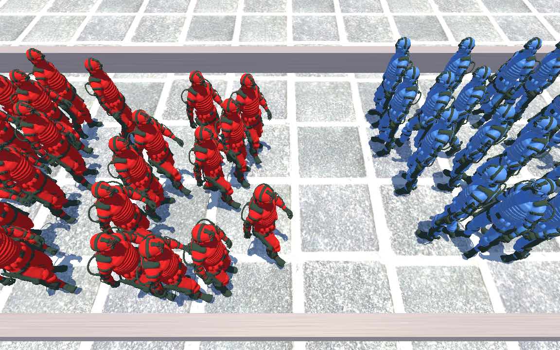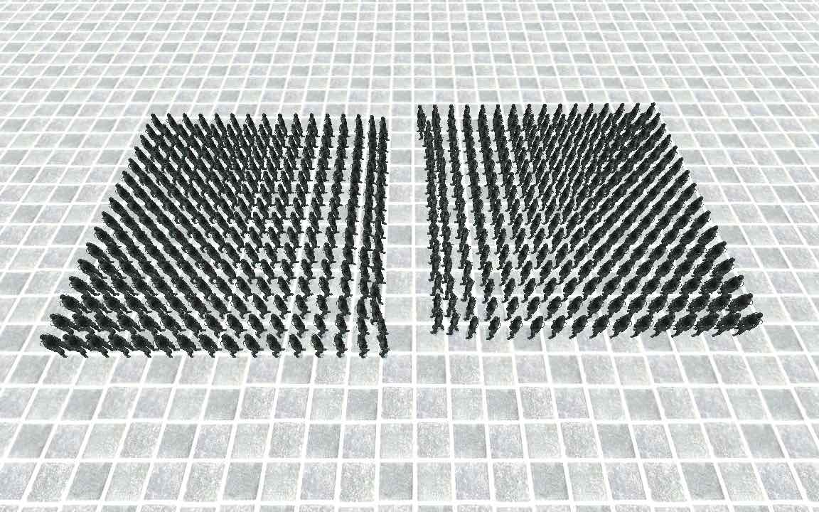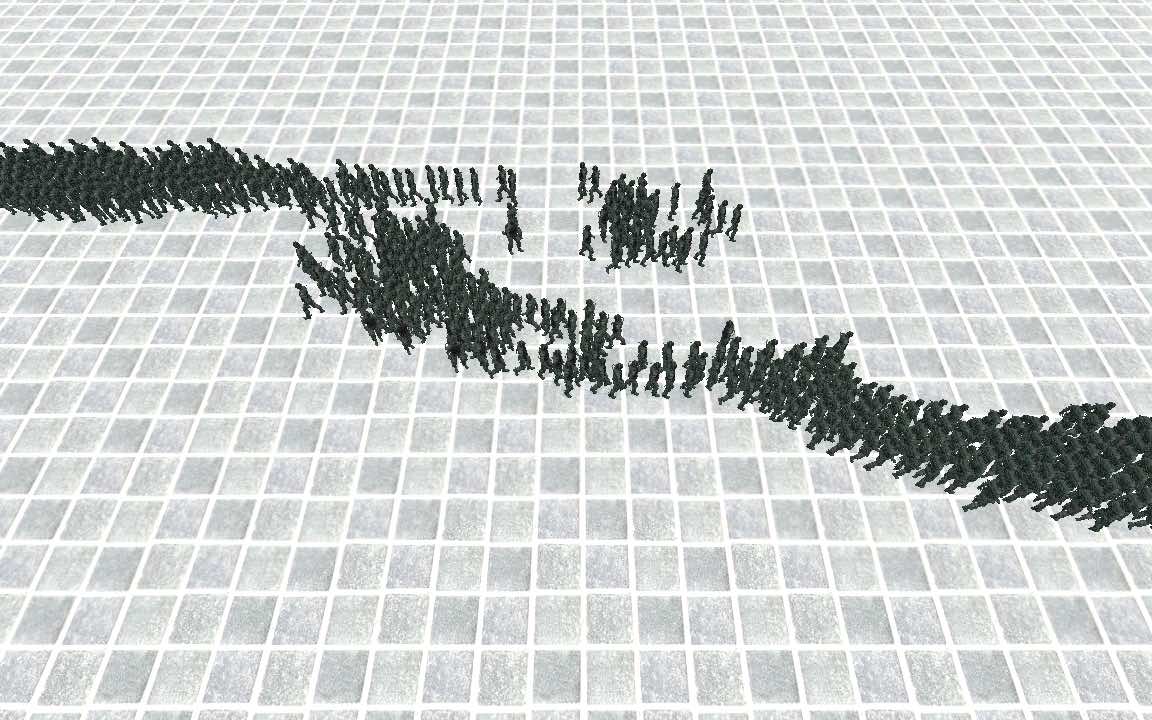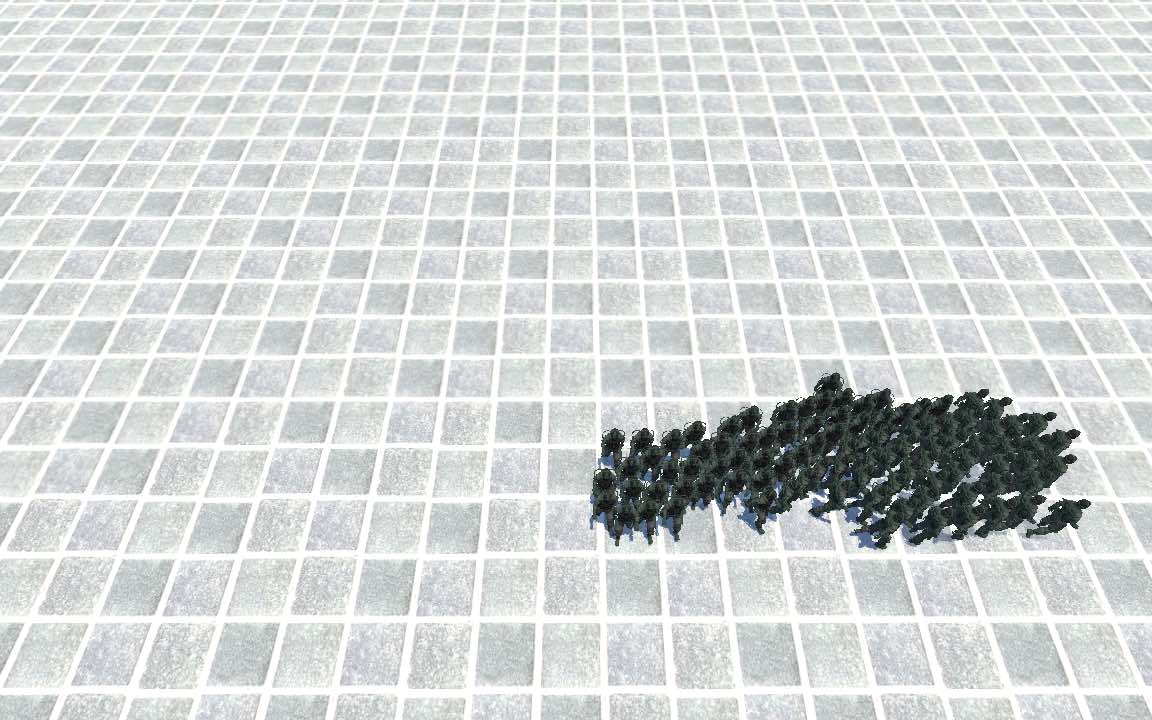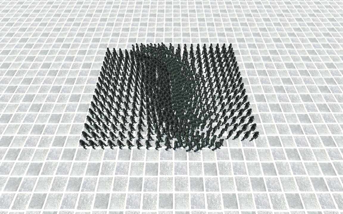 We introduce a crowd simulation method that uses a block coordinate descent solver reminiscent of projective dynamics approaches. Existing projective dynamics work focuses on simulating deformable materials, which makes us the first to incorporate crowds into such a framework. We simulate agents as nodes in a mass-spring system, where springs are created dynamically to represent different crowd phenomena. We propose novel projective solutions for these springs to emulate time-to-collision avoidance behaviors. Our method captures the collective response of the crowd using implicit Euler integration, while a conjugate gradient solver efficiently resolves the resulting mass-spring linear system, enabling the simulation of large-scale, emergent crowd behaviors.